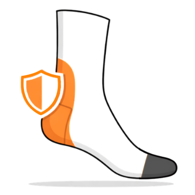 Verstärkte Bänder stützen Ihre Achillessehne und bieten gezielten Schutz und sanfte Stabilität. Das Design in Crew-Länge sorgt für sicheren und bequemen Halt an Knöchel und Achillessehne.