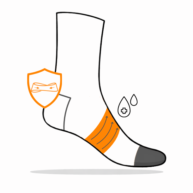 Targeted compression means we place supportive pressure exactly where your feet need it most — namely around the arch and metatarsus. By focusing compression in these key zones, our socks help boost your stability, enhance blood flow and reduce fatigue, even during the most intense tennis rallies.
