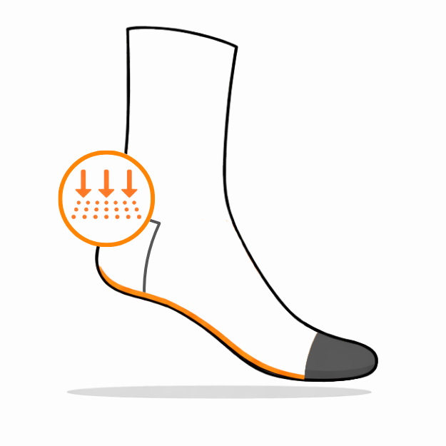 Unsere Socken sind mit gezielter Active Arc-Kompression im Fußgewölbe und Mittelfußbereich ausgestattet, die die Durchblutung fördert und zusätzliche Stabilität genau dort bietet, wo Sie sie benötigen. Diese fortschrittliche Unterstützung trägt dazu bei, Fußermüdung zu reduzieren, sodass Sie energiegeladen und konzentriert bleiben.