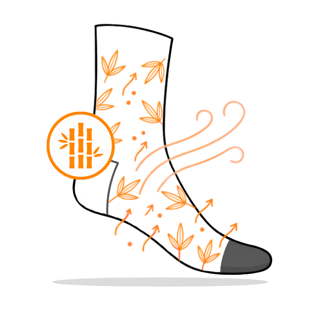 Schweißfüße und unangenehmer Geruch gehören der Vergangenheit an. Unsere Socken bestehen aus Bambusfasern, die von Natur aus feuchtigkeitsableitend, atmungsaktiv und antibakteriell sind. So bleiben Ihre Füße trocken, komfortabel und frisch – egal wie lange Sie aktiv sind.